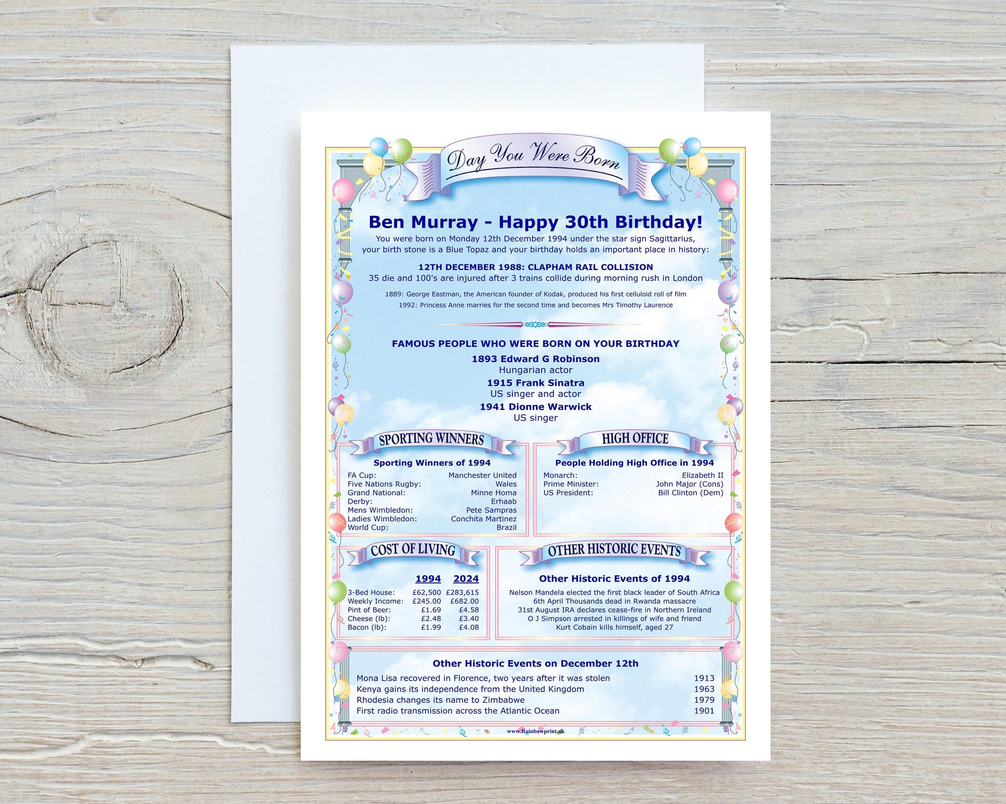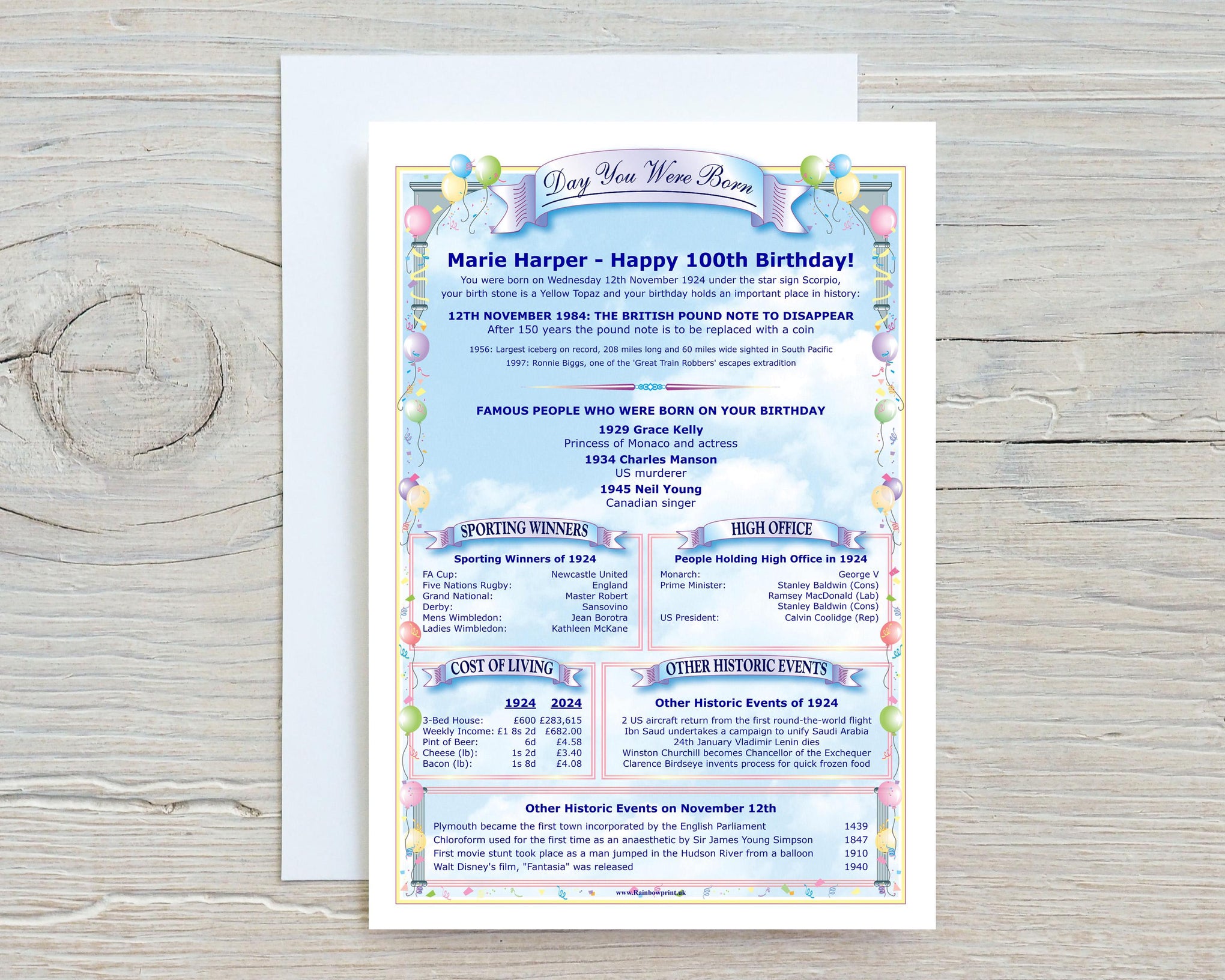 ✨ Personalised Details: Customised with the name and birthdate for a truly personal touch. ✨ Historical Insights: Discover significant events, news headlines, and interesting facts from the day they were born.
