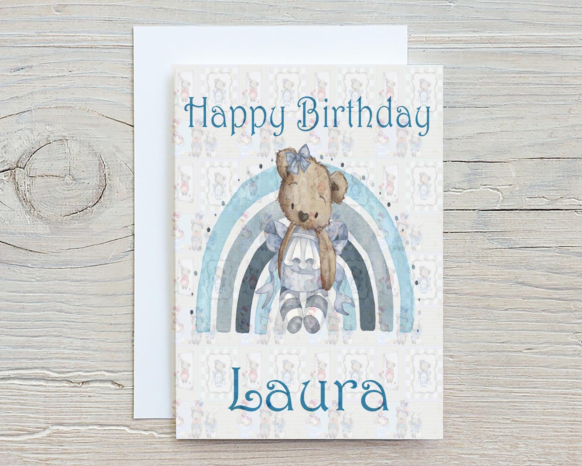 Beautiful Alice Bear blue themed A5 Greetings Card!