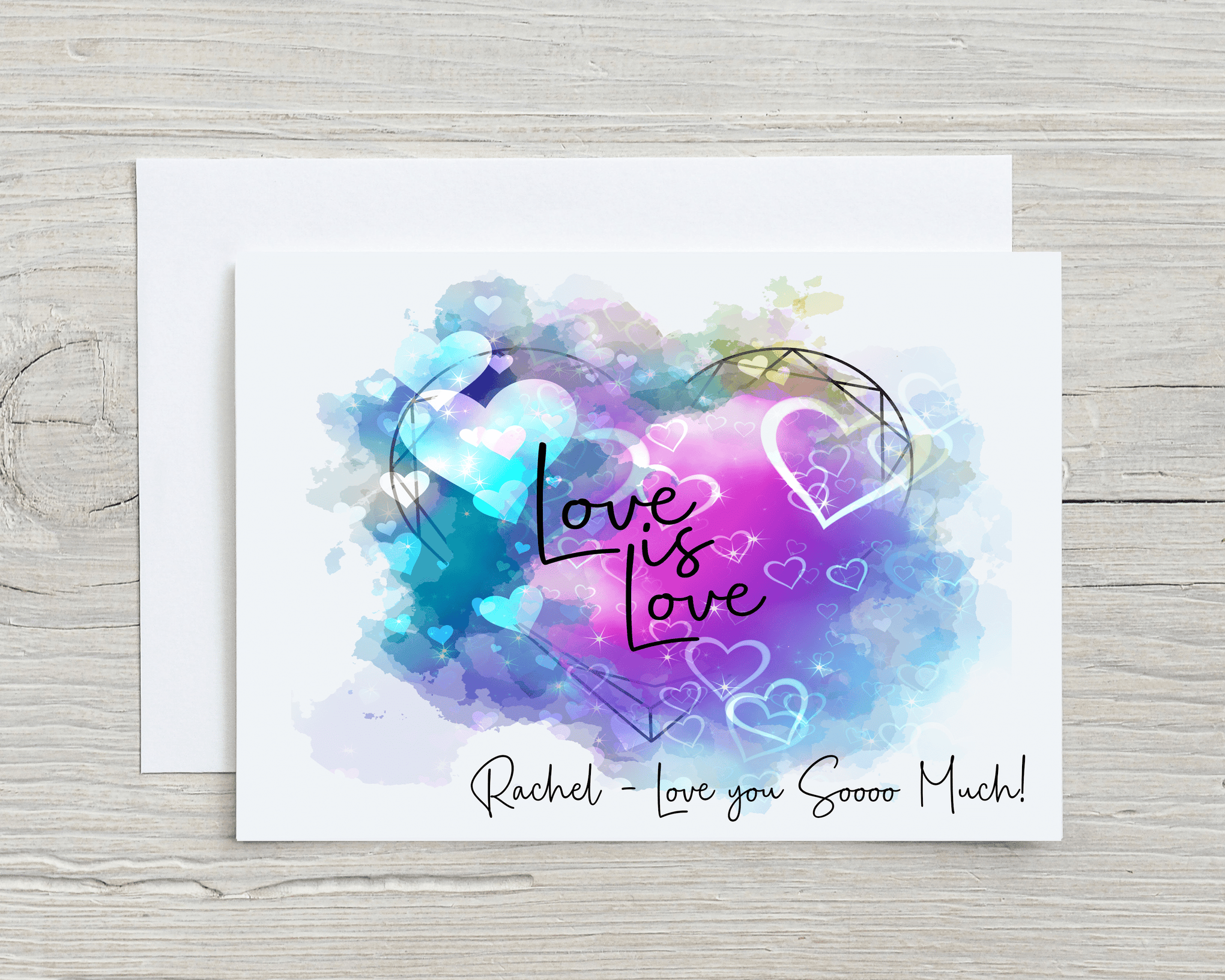 A beautiful, personalised card - Love Is Love! Personalised with any wording on the front (if you want).
