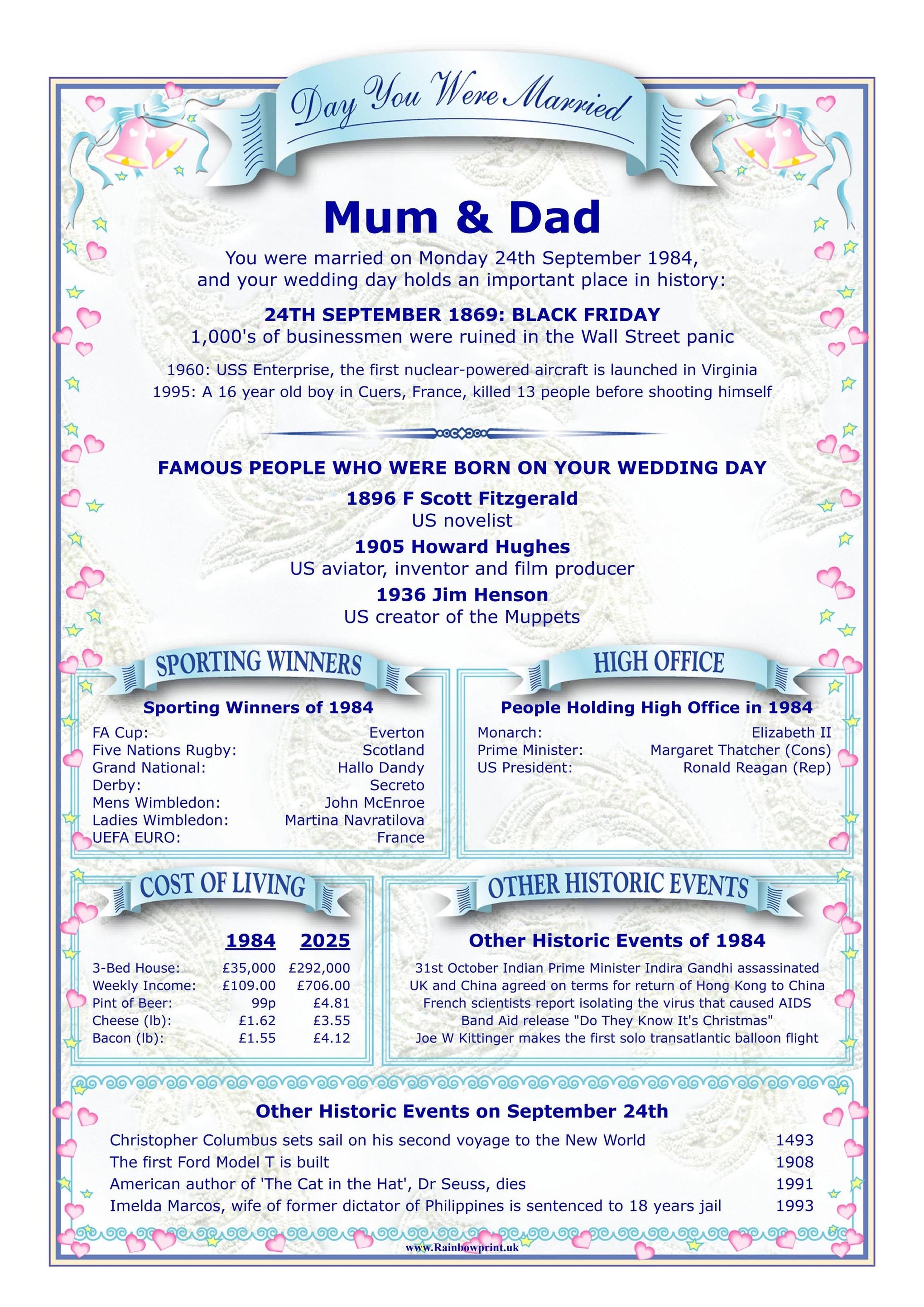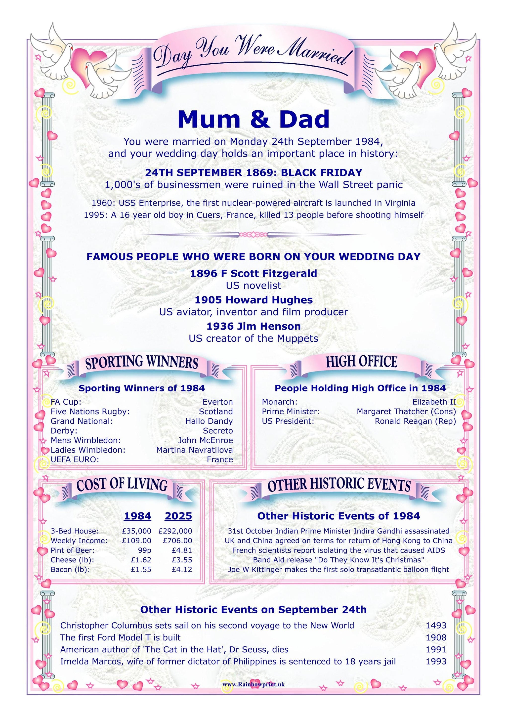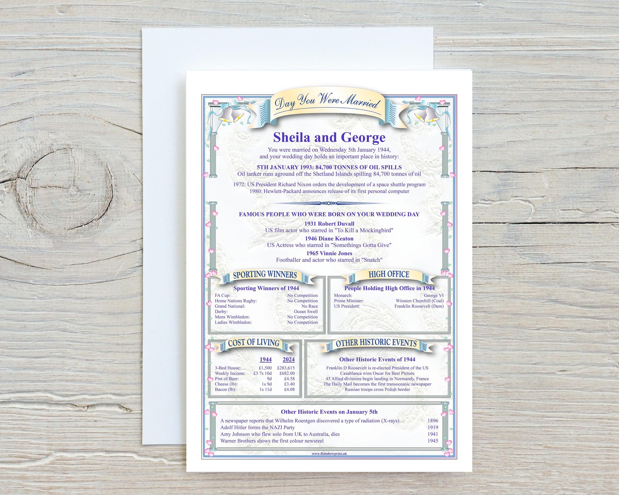This personalised history greetings card makes an unforgettable addition to any anniversary gift. It's a thoughtful and engaging present that will be cherished for years to come as a beautiful reminder of their special day.